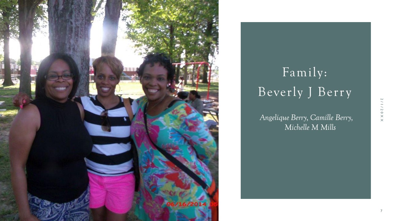 Siblings: Angelique Berry, Camille BerryMichelle M Mills